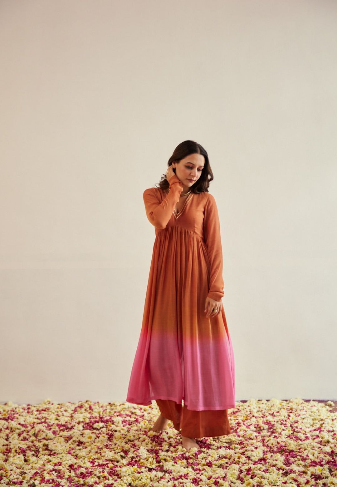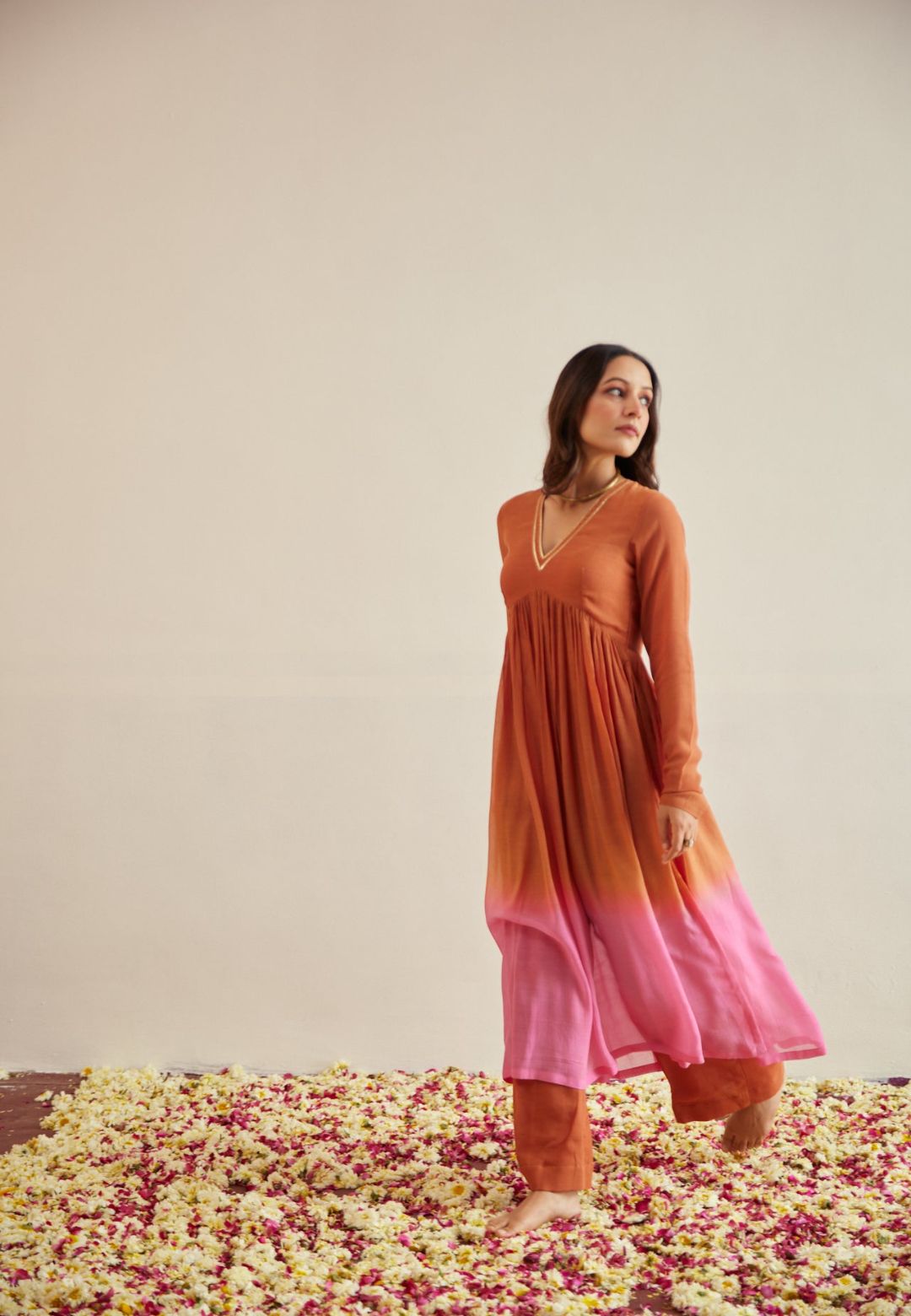 This apparel has been crafted by hand and may have slight variation, irregularities, or imperfections in colour or embellishment. These irregularities are the result of human involvement in the process and not defects. Natural dyed colours might bleed during the first wash.