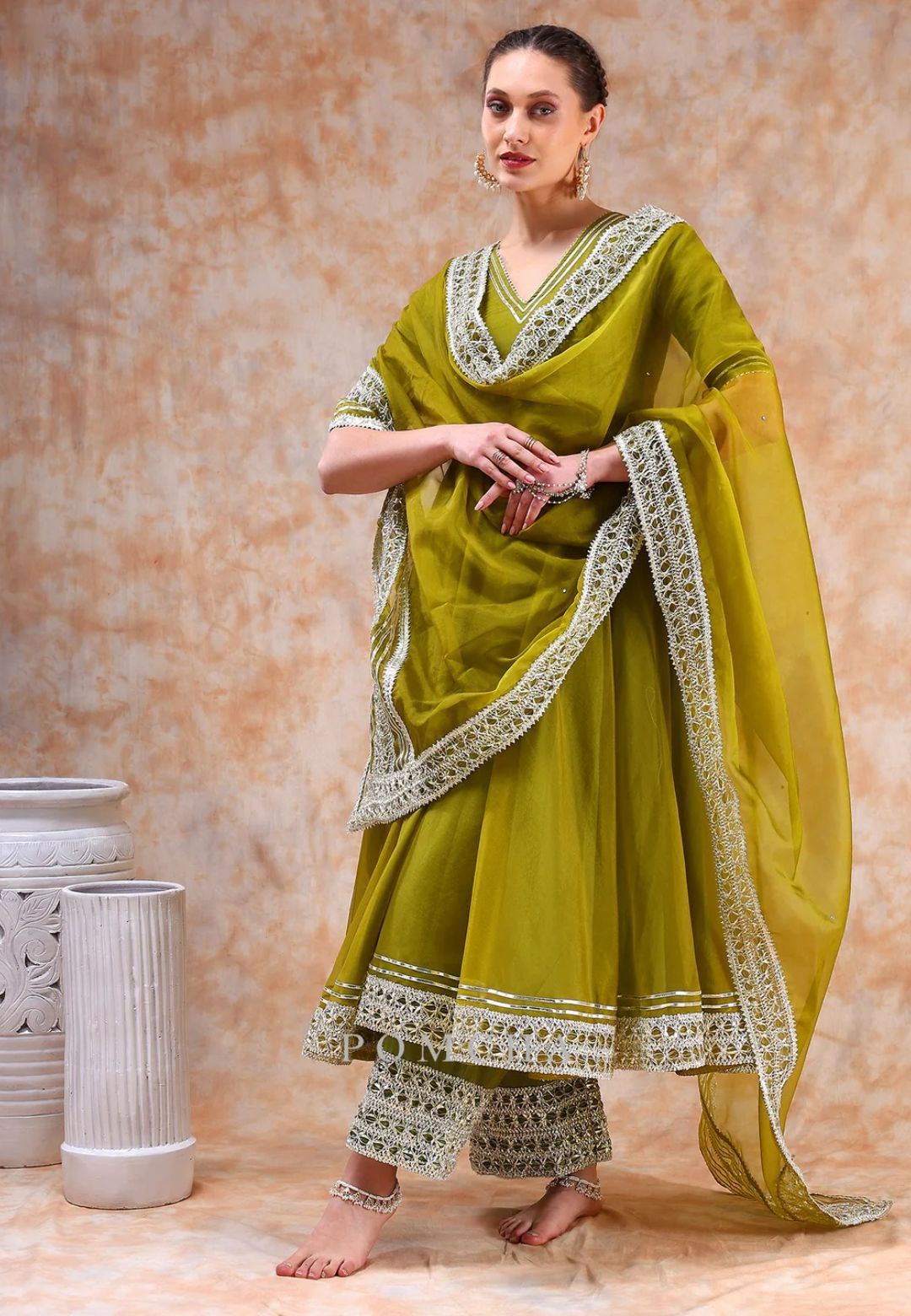 MEHENDI GREEN DIL KASH ORGANZA ANARKALI SUIT SET