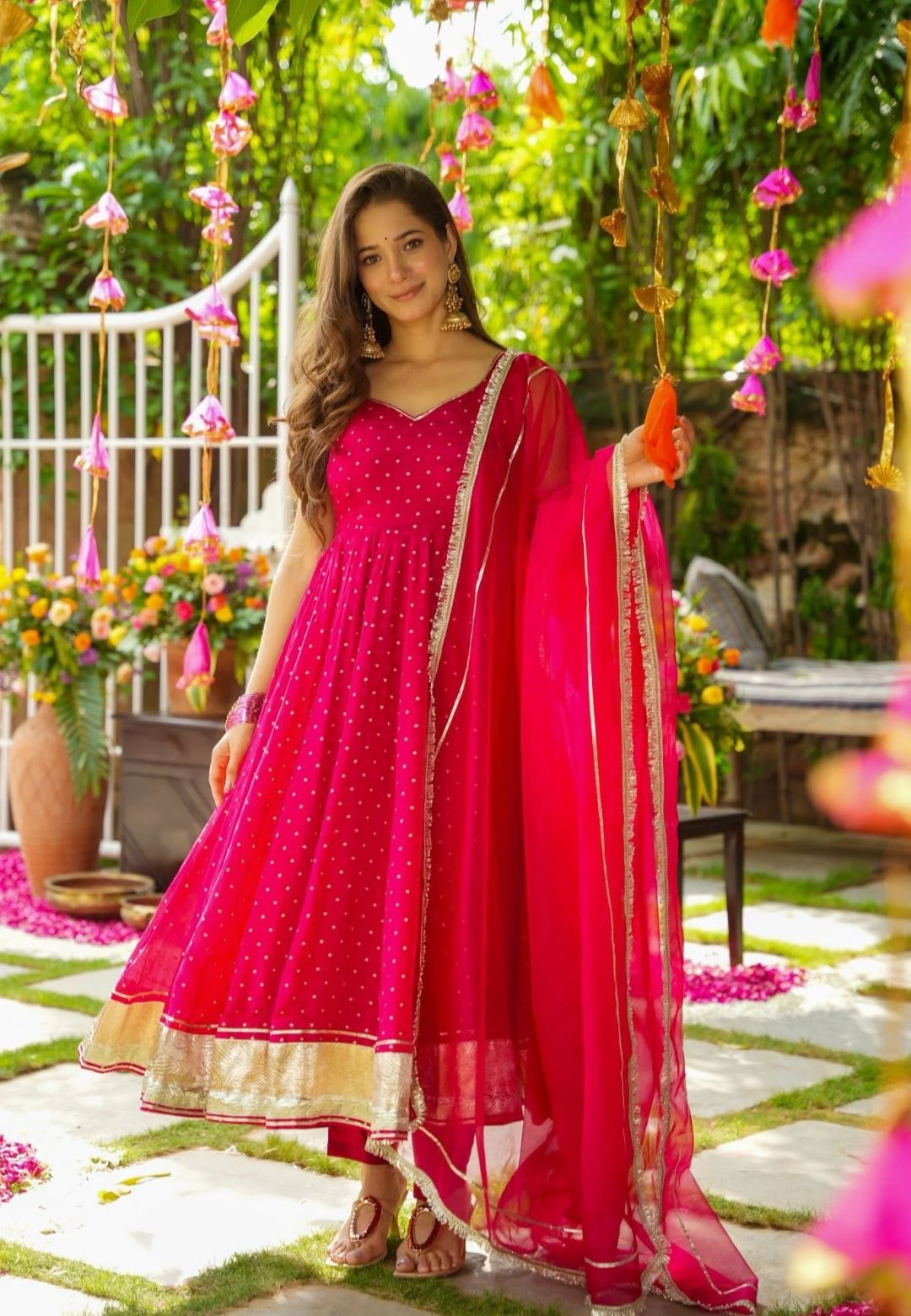 PINK PHOOLKARI SLEEVELESS ORGANZA SUIT SET