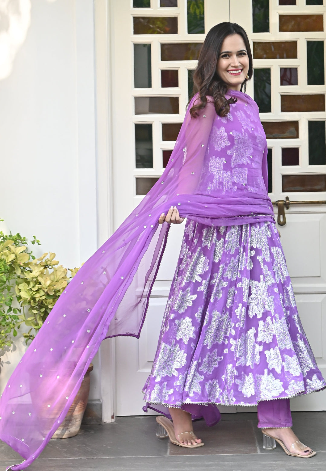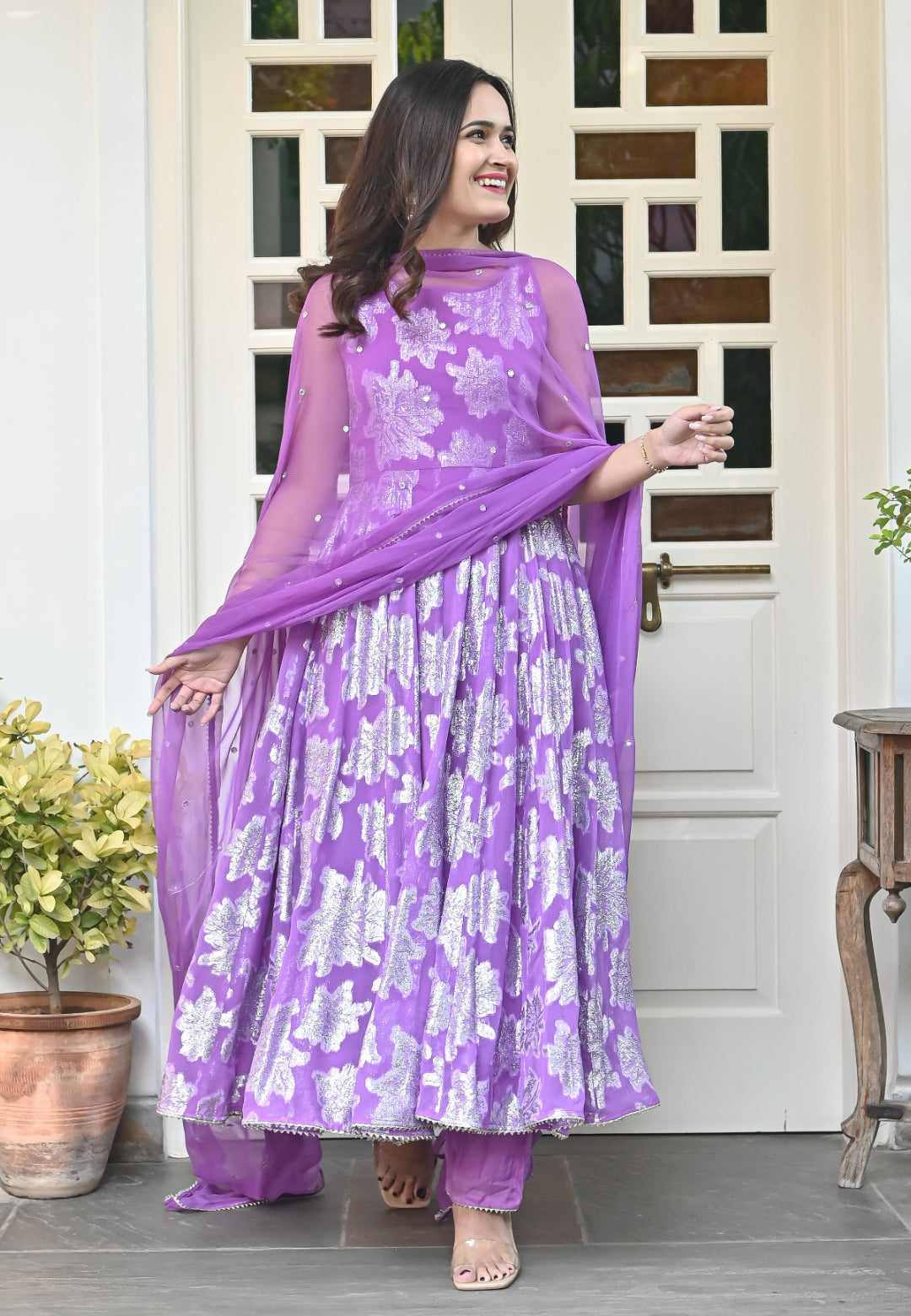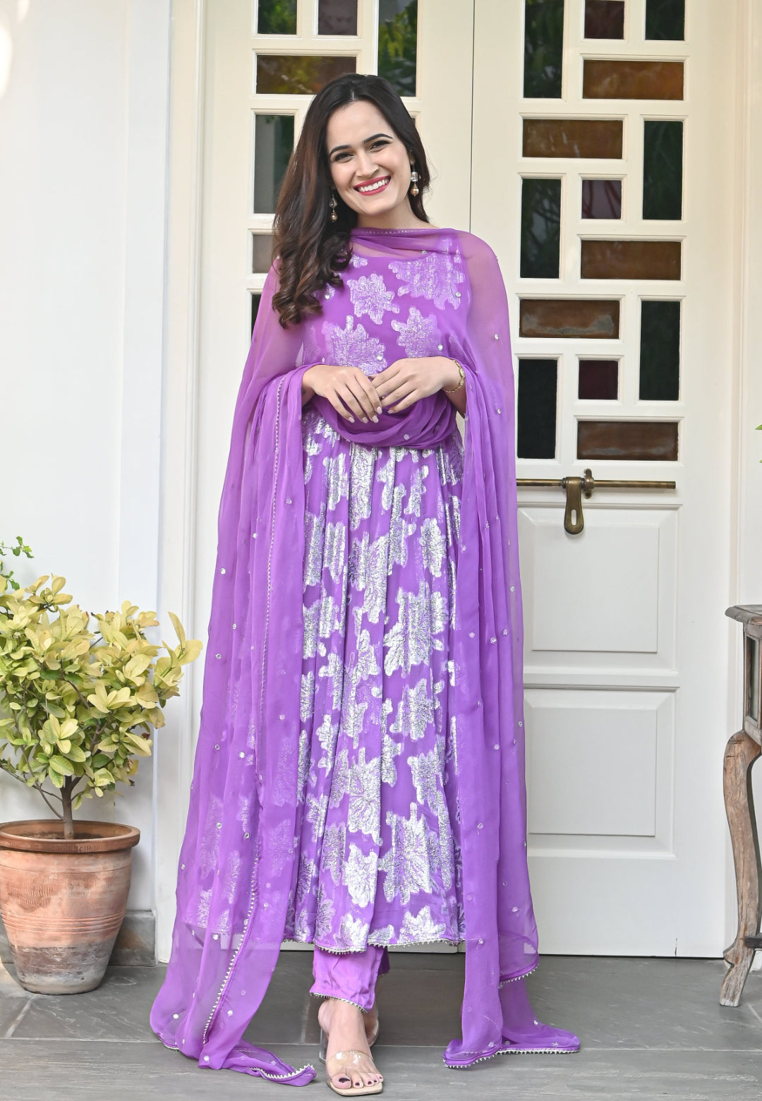 PURPLE GARIMA ANARKALI SUIT SET