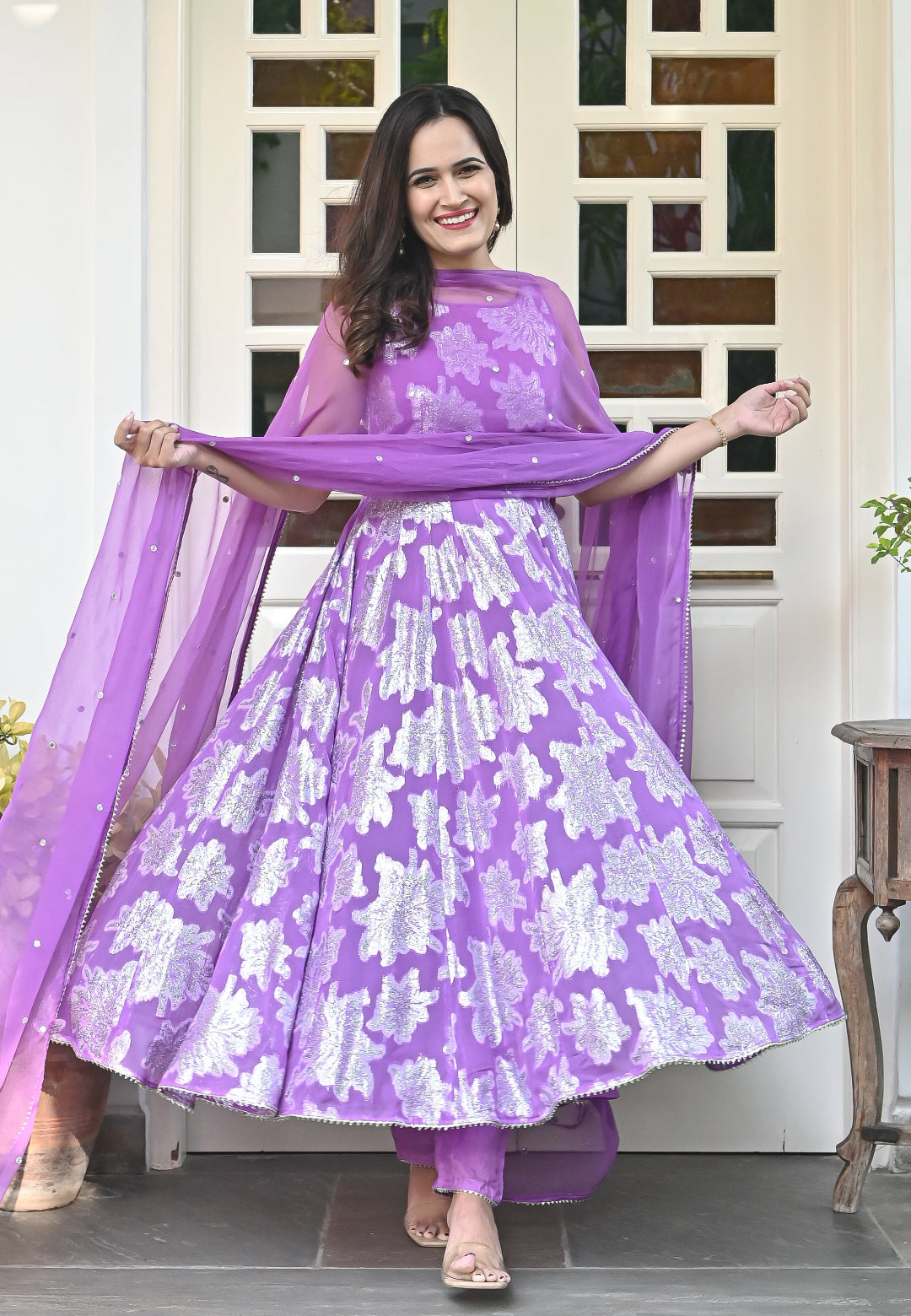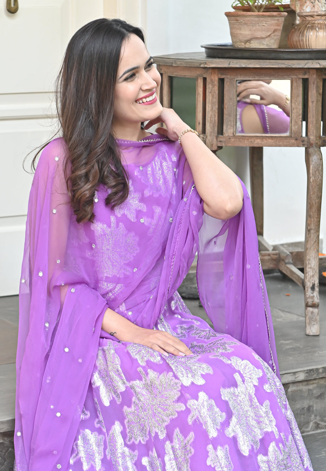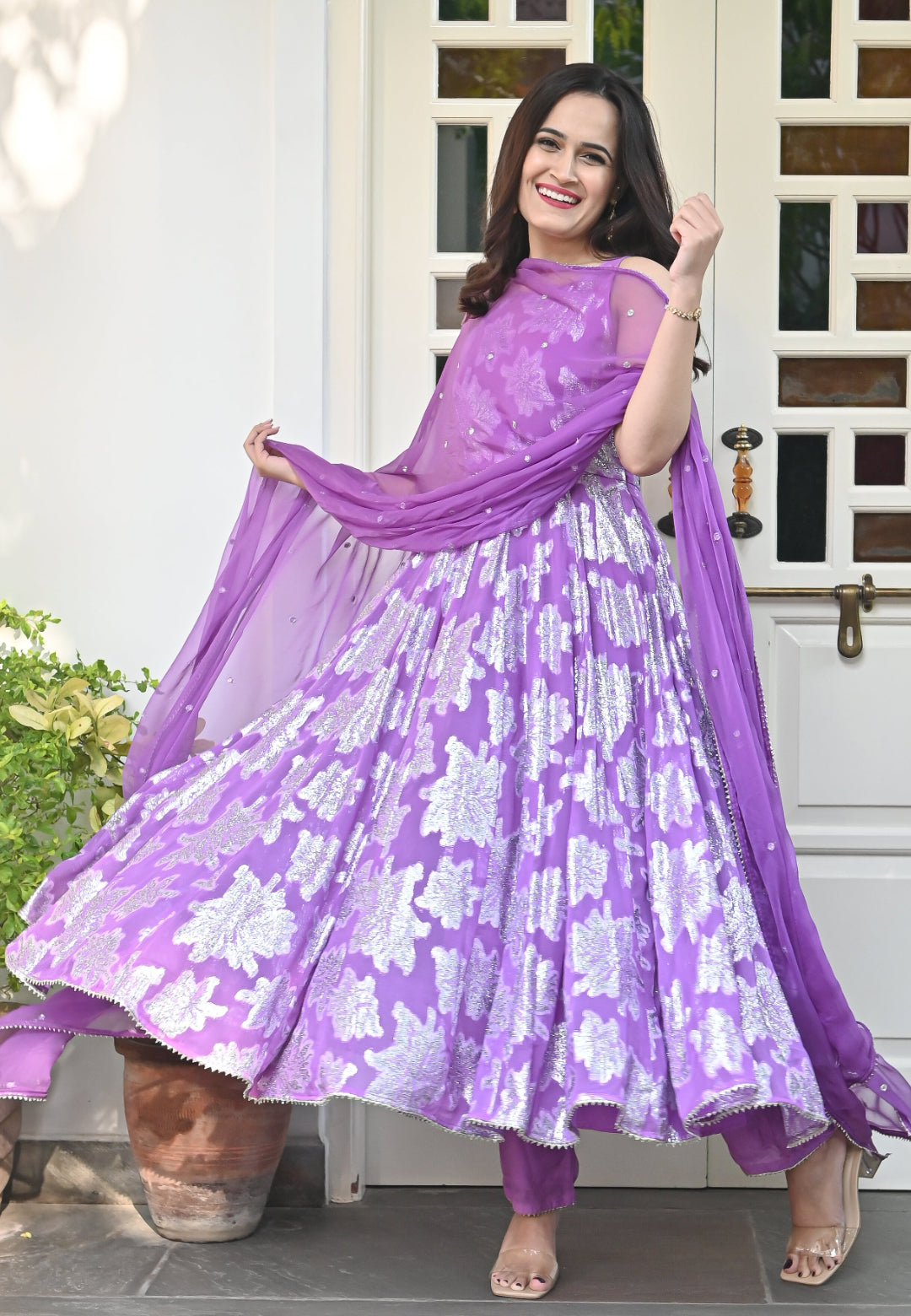 PURPLE GARIMA ANARKALI SUIT SET